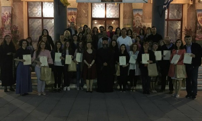 Στην απονομή των πτυχίων φέτος προέβη ο Αρχιμανδρίτης π. Ραφαήλ Ευαγγέλου, από τον Ιερό Μητροπολιτικό Ναό του Αγίου Αχιλλίου, ο οποίος ως έμπειρος κατηχητής και με σπουδές στην επιστήμη της Βιολογίας, μίλησε το βράδυ της Δευτέρας 30 Απριλίου 2018 στο φιλόξενο αρχονταρίκι του Ιερού Ναού του Αγίου Νικολάου, σχετικά με το υψηλό έργο της κατηχήσεως των νέων , λέγοντας πώς η κατήχηση είναι βίωμα και ζωή και πως εκείνος ο οποίος την ασκεί πρέπει να ζει ο ίδιος την μυστηριακή ζωή της Εκκλησίας, να εμπνέεται από το έργο της και την διδασκαλία της και να εμφυτεύει με ένθεο ζήλο και διάκριση μεγάλη τον Ιησού Χριστό στις καρδιές των νέων ανθρώπων, ενώ προέτρεψε να συνεχίσουν με την ίδια θέρμη και την ίδια διάθεση την μαθητεία τους μέσα στην Εκκλησία του Χριστού, αφού η διδασκαλία οπως και η κατήχηση βέβαια, δεν είναι κάτι που τελειώνει σε κάποια χρονική στιγμή αλλά αντίθετα, συνεχίζεται σε όλη την διάρκεια της ζωής του ανθρωπου.