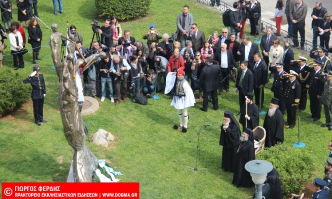 Στην πλατεία Κάραβελ, όπου πραγματοποιήθηκαν τα αποκαλυπτήρια του μνημείου που φτιάχτηκε προς τιμήν των ηρώων, οι δυο Πρόεδροι και πλήθος κόσμου τίμησαν τους αγωνιστές που θυσιάστηκαν για την ελευθερία της Κύπρου.