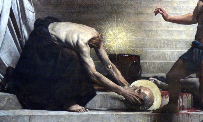 *Η κεντρική φωτογραφία του θέματος είναι λεπτομέρεια του παραπάνω πίνακα με θέμα «Το μαρτύριου του Αγίου Διονυσίου». Στην Γαλλία όπου επίσης ο Άγιος Διονύσιος τιμάται, υπάρχουν πολλές απεικονίσεις και αγάλματα τα οποία τον παρουσιάζουν να κρατά το κεφάλι του, υιοθετόντας την παράδοση που τον θέλει να οπαραδίδει ο ίδιος την κεφαλή του σε πιστή Χριστιανή.
