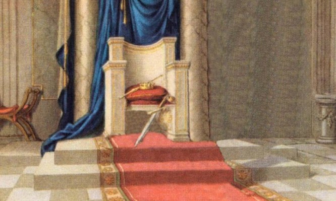 Το σχέδιο ήταν απλό. «Αν ο άρχοντας βγει και μιλήσει καθαρά και ωραία κανείς δεν θα έχει πια αμφιβολίες». Οι αυλικοί ανέλαβαν να του γράψουν τα λόγια. Έφεραν και ζωγράφους. Κάθισαν από την μια τον άρχοντα, έβαλαν και τον αγγελιοφόρο με το σπαθί από την άλλη, και τους έφτιαξαν πορτρέτα.