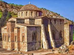 Η μονή ιδρύθηκε τον 6ο αιώνα πάνω στα ερείπια του ναού του Δαφναίου Απόλλωνα ο οποίος είχε καταστραφεί από τους Γότθους το 395. Κάποιοι κίονες ιωνικού ρυθμού του αρχαίου ναού χρησιμοποιήθηκαν και πάλι. Σήμερα έχει διασωθεί μόνο ένας, ενώ οι υπόλοιποι μεταφέρθηκαν στο Λονδίνο από τον Λόρδο Έλγιν.
