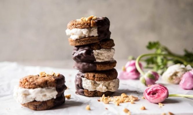 Μοναστηριακό σάντουιτς με μπισκότα και παγωτό μπανάνα