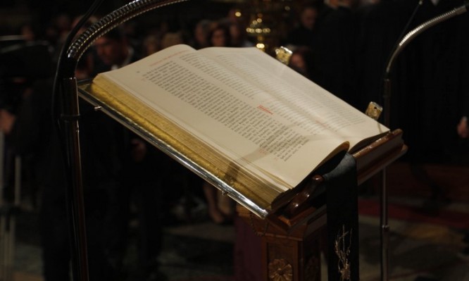 ΑΠΟΣΤΟΛΟΣ (Εφεσ. β΄ 14-22) Αδελφοί, Χριστός ἐστιν ἡ εἰρήνη ἡμῶν, ὁ ποιήσας τὰ ἀμφότερα ἓν καὶ τὸ μεσότοιχον τοῦ φραγμοῦ λύσας, τὴν ἔχθραν, ἐν τῇ σαρκὶ αὐτοῦ τὸν νόμον τῶν ἐντολῶν ἐν δόγμασι καταργήσας, ἵνα τοὺς δύο κτίσῃ ἐν ἑαυτῷ εἰς ἕνα καινὸν ἄνθρωπον ποιῶν εἰρήνην, καὶ ἀποκαταλλάξῃ τοὺς ἀμφοτέρους ἐν ἑνὶ σώματι τῷ Θεῷ […]