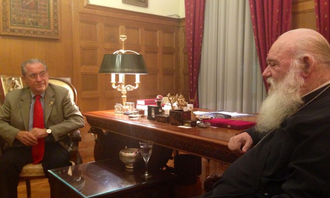 Αργότερα, συναντήθηκε και με τον Αρχιεπίσκοπο Αθηνών κ. Ιερώνυμο συνοδευόμενος από τον κ. Δήμτσα και τον διοικητή της ΑΧΕΠΑ Ελλάς-Περιφέρεια κ. Νίκο Παπαδόπουλο, όπου εξήρε το έργο της «Αποστολής» και εξέφρασε την ικανοποίηση της ομογένειας στην υλοποίηση ενός προγράμματος κοινωνικής ευαισθητοποίησης για τους συνανθρώπους μας που αδυνατούν να αντεπεξέλθουν στις δυσκολίες των καιρών.