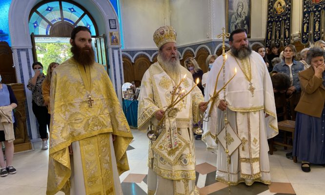 Κλείνοντας μετέφερε προς τον εορτάζοντα εφημέριο και το πολυπληθές εκκλησίασμα τις άπειρες, εγκάρδιες, πατρικές ευχές του αγγέλου της τοπικής μας Εκκλησίας του Σεπτού Πατρός και Ποιμενάρχου μας Σεβασμιωτάτου Μητροπολίτου Πατρών κ. κ. Χρυσοστόμου για έτη πολλά, ευλογημένα, αγιασμένα, θεοσκέπαστα και θεοφρούρητα.