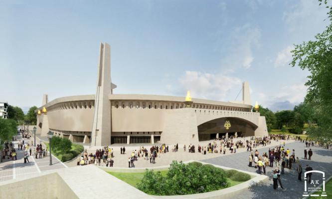 Με χαρακτηριστικά που παραπέμπουν σε βυζαντινό οχυρό αλλά και αρχιτεκτονικά μέρη που παραπέμπουν στον θρυλικό Ναό της Κωνσταντινούπολης κοσμείται το νέο γήπεδο της ΑΕΚ που θα έχει το όνομα Αγια Σοφία.