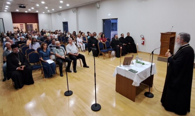Λίγο πριν ολοκληρώσει, ο Σεβασμιώτατος μνημόνευσε με ευγνωμοσύνη τους μακαριστούς καθηγητές της Σχολής και εργάτες των Ελληνικών Γραμμάτων και του Βυζαντινού μέλους Άγγελο Μαντά (+21/8/2024) και Σπυρίδωνα Σιμιτζή (+8/10/2024).