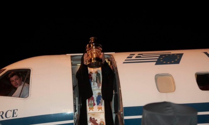Η ελληνική ανιπροσωπεία μεταφέρει το Θείο Φως και το αναστάσιμο μήνυμα στην Ελλάδα. “Το ‘Αγιο Φως θα μεταφερθεί σε όλες τις γωνιές της, στους ορθόδοξους ναούς που απόψε θα μεταφέρουν το χαρμόσυνο μήνυμα της Αναστάσεως και της ελπίδας”, σημείωσε.