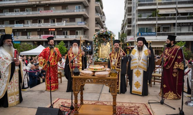 Για αυτό και η ετήσια πανήγυρη του Αγίου αποτελεί πανηγύρι για ολόκληρη την πόλη, για κάθε κάτοικο, για κάθε σπιτικό, για κάθε γειτονιά και η συμμετοχή όλων είναι εντυπωσιακή και συγκινητική ταυτόχρονα. Τα ροδοπέταλα, με τα οποία έραιναν οι πιστοί, καθ’ όλη τη διαδρομή της ιεράς Λιτανείας, την Ιερά Εικόνα και το Ιερό Λείψανο του Αγίου συναγωνίζονταν σε ευωδία τα ίδια τα μαρτύρια του Αγίου, ανέφερε ο Σεβασμιώτατος.