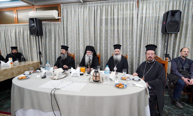 Ο Σεβασμιώτατος στην εισαγωγική του τοποθέτηση αναφέρθηκε στη δύσκολη και αβέβαιη εποχή που διανύει η ανθρωπότητα, και ιδιαίτερα η Εκκλησία, η οποία βρίσκεται αντιμέτωπη με μια γενικευμένη αμφισβήτηση και διαστρέβλωση των θεμελιωδών αξιών. Σημειώνοντας πως οι συνθήκες και οι ιστορικές συμβάσεις ανατρέπονται, τόνισε πως επικρατεί ένα κλίμα αναθεωρητισμού που καθιστά αβέβαιο το μέλλον, επισημαίνοντας, όμως, παράλληλα πως παρά τις αναταραχές αυτές, η Εκκλησία συνεχίζει το έργο της, προσβλέποντας στη Χάρη του Χριστού και παρέχοντας στους πιστούς τη δυνατότητα μετοχής στη Θεία Ζωή μέσω των Μυστηρίων της.