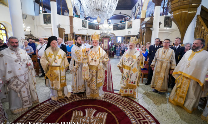 Το πρωί του Σαββάτου, 19ης Αυγούστου, στον πανηγυρίζοντα Ιερό Ναό Κοιμήσεως της Θεοτόκου Ναούσης τελέστηκε λαμπρό Αρχιερατικό Συλλείτουργο για την εορτή του προστάτου και πολιούχου της ηρωικής και αγιοτόκου πόλεως, Οσίου Θεοφάνους του Θαυματουργού.