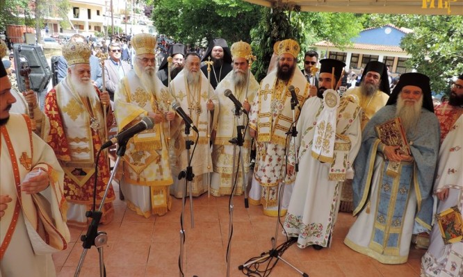 Στο Αρχιερατικό Συλλείτουργο ετελέσθη με την συμμετοχή των Σεβασμιωτάτων Μητροπολιτών Κορίνθου κ. Διονυσίου, Θερμοπυλών κ. Ιωάννου και του οικείου Ιεράρχου, Χαλκίδος κ. Χρυσοστόμου.