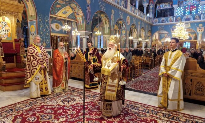 Στον Ιερό Ναό Αναλήψεως του Χριστού Βόλου λειτούργησε σήμερα, Κυριακή προ των Χριστουγέννων, ο Σεβ. Μητροπολίτης Δημητριάδος κ. Ιγνάτιος, όπου εόρτασε τα 50 χρόνια από την Ρασοφορία του, παρουσία πλήθους πιστών. Στο κήρυγμά του ο Σεβασμιώτατος αναφέρθηκε στο πρόσωπο του Ιωσήφ του Μνήστορος, «ο οποίος βιώνει, με τρόπο μυστικό, το μέγα Μυστήριο, έχοντας εμπιστοσύνη στο θέλημα του Θεού […]