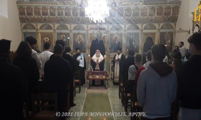 Το Σάββατο 16 Οκτωβρίου 2021, το απόγευμα, ο Σεβασμιώτατος Μητροπολίτης Άρτης κ. Καλλίνικος ετέλεσε τον καθιερωμένο εναρκτήριο Αγιασμό των Ανωτέρων (για μαθητές και μαθήτριες Γυμνασίου και Λυκείου) Κατηχητικών Συνάξεων (αντίστοιχα Αρρένων και Θηλέων) Άρτης, στον Ιερό Ναό του Αγίου Ιωάννου του Θεολόγου, στο Πνευματικό Κέντρο της Ιεράς Μητροπόλεως.