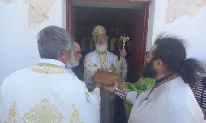 Ο Σεβασμιώτατος αφού κήρυξε τον Θείο λόγο, ευλόγησε τους προσφερόμενους άρτους και ευχήθηκε έτη πολλά και ευλογημένα.