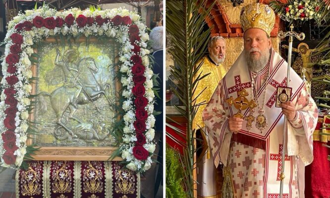 Σε αναστάσιμο πανηγυρικό κλίμα εορτάσθηκε την Τετάρτη της Διακαινησίμου, 23 Απριλίου 2025, η σεπτή μνήμη του Αγίου ένδοξου Μεγαλομάρτυρος Γεωργίου του Τροπαιοφόρου στον πανηγυρίζοντα ομώνυμο Ιερό Ναό Ηρακλείου Αττικής.