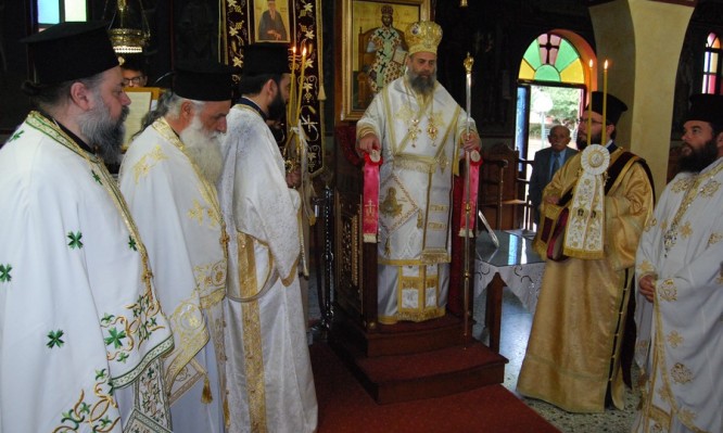 Προ της απολύσεως, ευλόγησε τους άρτους και το κόλλυβο προς τιμήν του Αγίου.