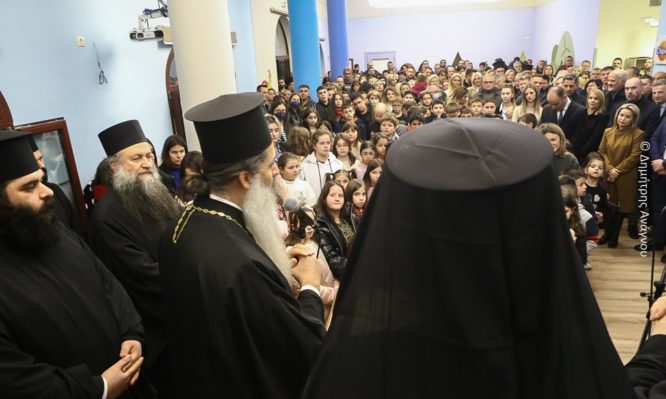 Ακολούθως, παρουσία των Αγίων Αρχιερέων, των αρχών του τόπου, τον καθηγητών και των παιδιών και των αρκετών γονέων του Ωδείου της Ιεράς Μητροπόλεως Φθιώτιδος «Γερμανός ο Μελωδός», του Κέντρου Δημιουργικής Απασχόλησης Παιδιού «Άγιος Εφραίμ» της Ιεράς Μητροπόλεως και της «Αποστολής», Ραδιοφωνικών Παραγωγών του Σταθμού και πολλών ακόμη προσκεκλημένων, στην μεγάλη αίθουσα των εκδηλώσεων του Κ.Δ.Α.Π. πραγματοποιήθηκε υπό του ΣεβαμσιωτάτουΜητροπολίτουΦλωρίνης, Πρεσπών και Εορδαίας κ. Ειρηναίου και συνευχομένων των ως άνω Αγίων Αρχιερέων και των συνοδειών τους, η ευλογία της Αγιοβασιλόπιτας των εκπαιδευτικών δομών της πτέρυγας «Μητροπολίτης Φθιώτιδος Νικόλαος Πρωτοπαπάς» της Ιεράς Μητροπόλεως Φθιώτιδος.