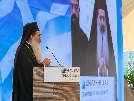 Αυτό το επενδυτικό περιβάλλον της Φθιώτιδος ευλογώ σήμερα. Το ευλογώ στην μεγάλη οικογένεια της Unipak Hellas, το ευλογώ και το χαιρετίζω στο πρόσωπο της σπουδαίας οικογένειας Frem και ιδιαιτέρως του αδελφού μου Fayssal.