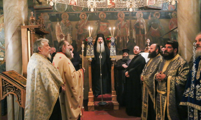 Αναστάσιμος Πανηγυρικός Αρχιερατικός Εσπερινός χοροστατούντος του ΣεβασμιωτάτουΜητροπολίτου Φθιώτιδος κ. Συμεών τελέσθηκε απόψε στην Ιερά Μονή Γενεσίου της Θεοτόκου Δαμάστας, επί τη εορτή της Συνάξεως του Τιμίου Προδρόμου και επ’ ευκαιρία των ονομαστηρίων της Αγίας Καθηγουμένης της Μονής, Γερόντισσας Ιωάννας.