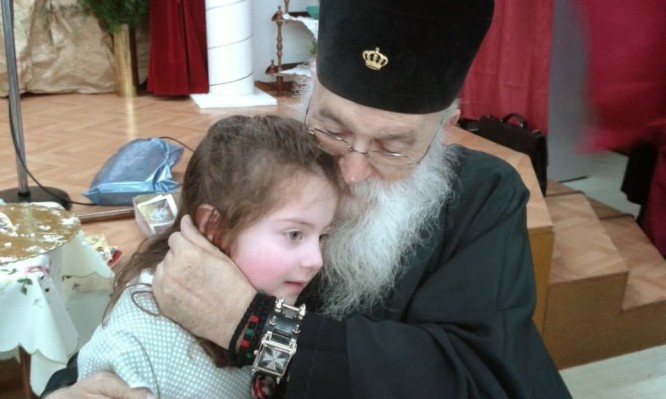 Ιδιαίτερη στιγμή ήταν όταν ο μητροπολίτης, ο οποίος έχει αδυναμία στα παιδιά, πήρε αγκαλιά ένα κοριτσάκι….