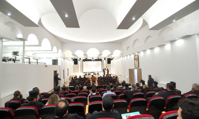 Ακολούθως, χαιρετισμό απηύθυνε ο Σεβασμιώτατος Μητροπολίτης Πειραιώς κ. Σεραφείμ, ο οποίος αναγνωρίζοντας το σημαντικό έργο της Εκκλησίας στη διάδοση της πίστης, τόνισε τη σχέση της Εκκλησίας με τις τεχνολογικές εξελίξεις. Επεσήμανε ότι η σύγχρονη τεχνολογία, ιδιαίτερα η τεχνητή νοημοσύνη και τα social media, δημιουργεί νέες προκλήσεις και επηρεάζει την ανθρώπινη αντίληψη και ζωή. Επίσης, έθεσε προβληματισμούς και σειρά σημαντικών ερωτημάτων για το αν η ψηφιακή επανάσταση βοηθά ή αλλοιώνει την πνευματικότητα, για την ταυτότητα του ανθρώπου, τη σωτηρία του και τη σχέση του με τον Θεό. Τέλος, υπογράμμισε ότι η Εκκλησία πρέπει να αξιοποιήσει την τεχνολογία με τρόπο που να διατηρεί τη Χριστοκεντρική θεώρηση του κόσμου και να ενισχύει την πνευματική ζωή των ανθρώπων, ενώ κάλεσε όλους να εργαστούν με ορθόδοξη θεολογική καθοδήγηση, ώστε η χρήση της τεχνολογίας να εναρμονίζεται με τη μυστηριακή ζωή.