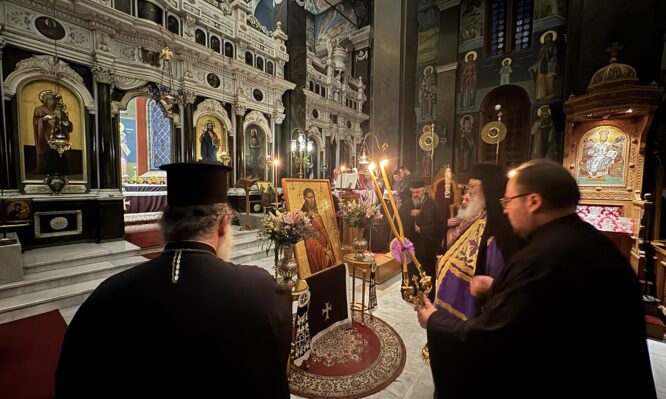 Το απόγευμα της Μ. Τρίτης 15 Απριλίου 2025, τελέσθηκε ο όρθρος της Μ. Τέταρτης μέσα σε κλίμα κατάνυξης, όπου όλοι οι πιστοί προσήλθαν για να συμμετάσχουν στην ακολουθία και να προσκυνήσουν την Ιερά Εικόνα του Νυμφίου Χριστού. Ο Μητροπολίτης Αλεξανδρουπόλεως κ. Άνθιμος χοροστάτησε στον Ιερό Μητροπολιτικό Ναό του Αγίου Νικολάου. Πριν το δοξαστικό των αποστίχων […]
