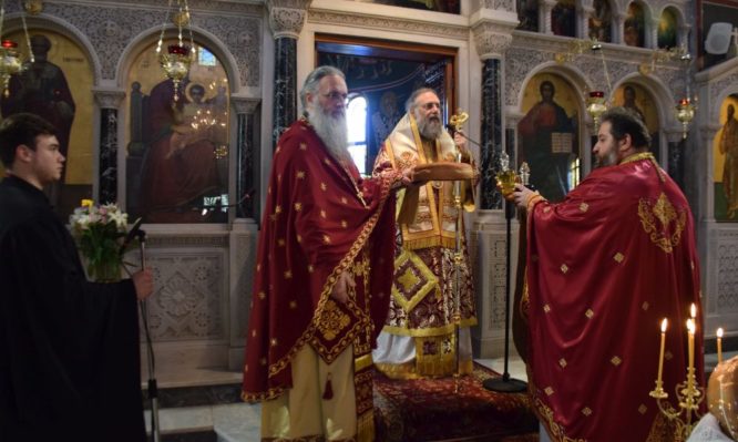 Της Θείας Λειτουργίας προεξήρχε ο Σεβασμιώτατος Ποιμενάρχης μας κ. Χρυσόστομος πλαισιωμένος από Κληρικούς της Ιεράς Μητροπόλεως.