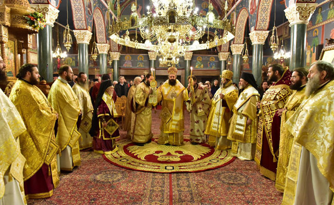 Της Πανηγυρικής Αρχιερατικής Θείας Λειτουργίας προεξήρχε ο Σεβασμιώτατος Μητροπολίτης Τρίκκης και Σταγών κ.κ. Χρυσόστομος, ο οποίος χοροστάτησε και του Όρθρου, συλειτουργούντων του Σεβασμιωτάτου Μητροπολίτου Λαγκαδά, Λητής και Ρεντίνης και των Θεοφιλεστάτων Επισκόπων Θεουπόλεως κ.κ. Παντελεήμονος και Αμορίου κ.κ. Νικηφόρου.