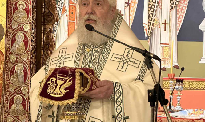 Ανήμερα της εορτής ο Σεβασμιώτατος ιερούργησε στο Ιερό Ησυχαστήριο, πλαισιούμενος από ιερείς της Ιεράς Μητροπόλεώς.