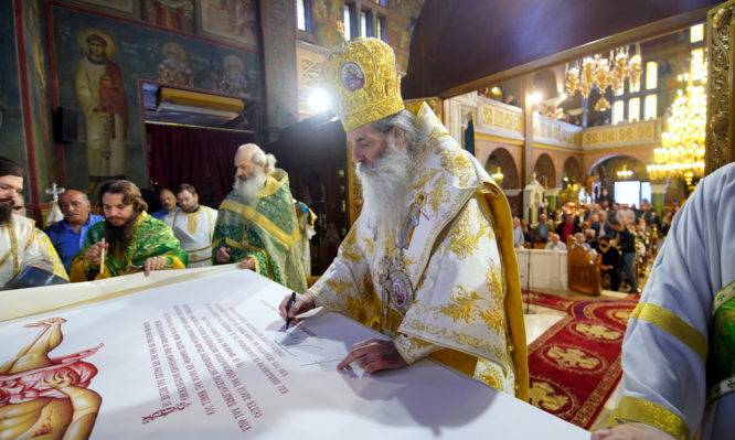 «Ο Άγιος Νείλος», τόνισε με έμφαση ο Σεβασμιώτατος «είναι ένα άλλου είδους ίνδαλμα, αιώνιο, άφθαρτο, ευωδιάζoν, που δείχνει ποιος είναι ο σκοπός της ζωής, γιατί ζούμε τελικά».