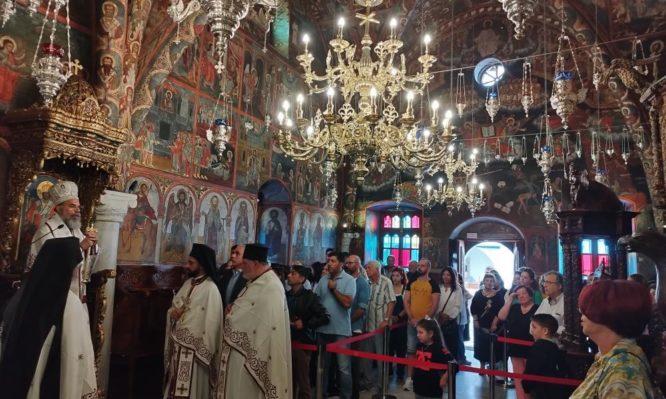 Εἰς τόν γραφικό ὅρμο τοῦ Πανορμίτου προσῆλθαν καί σήμερα πλήθη προσκυνητῶν, πρός τούς ὁποίους ὁ Σεβ. Ποιμενάρχης μας ἐπεσήμανε τά ὀρθά ἐκκλησιαστικά χαρακτηριστικά τῶν ἀληθινῶν προσκυνητῶν καί εὐχήθη τά δέοντα γιά τήν ὑγείαν ὅλων καί τήν εἰρήνευση τοῦ σύμπαντος κόσμου.