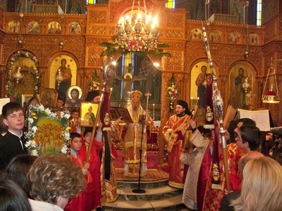 Στο τέλος της Θείας Λειτουργίας έλαβε χώρα η λιτανεία των εικόνων του ναού, σε ανάμνηση της αναστήλωσης των ιερών εικόνων, παρουσία των αρχών της πόλης και πλήθους κόσμου.
