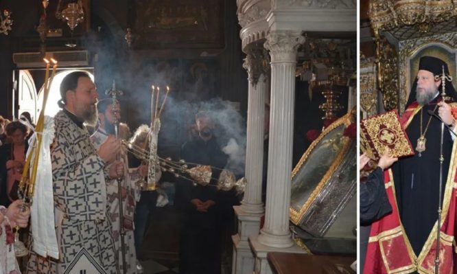 Την Κυριακή 16 Οκτωβρίου (Δ΄Λουκά), ο Μητροπολίτης κ. Γαβριήλ, ευλογία και κανονική αδεία του οικείου Ποιμενάρχου Σύρου-Τήνου κ. Δωροθέου Β’, χοροστάτησε στην ακολουθία του Όρθρου και στη συνέχεια τέλεσε την Αρχιερατική Θεία Λειτουργία στον Πανίερο Ναό της Ευαγγελιστρίας, με τη συμμετοχή κληρικών της Ιεράς Μητροπόλεως, κληρικών από τις Ιερές Μητροπόλεις Νεαπόλεως και Σταυρουπόλεως και Πατρών, του Αρχιερατικού Επιτρόπου της Ιεράς Νήσου Πρωτοπρ. Γεωργίου Φανερού, των Ιερέων και Διακόνων του Πανιέρου Ναού.