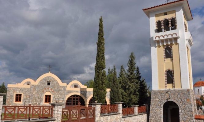 Το 1988 στη θέση Κάμπια, σε αγροτεμάχιο που παραχωρήθηκε από την οικογένεια Στεφάνου και Ελένης Κουμνάκη, ξεκίνησε η ανέγερση μοναστηριακού συγκροτήματος από τον Αρχιμανδρίτη Σεραφείμ Παρχαρίδη. Η μονή αφιερώθηκε στην Παναγία την Παραμυθία από την ομώνυμη θαυματουργή και αχειροποίητο εικόνα της Ιεράς Μονής Βατοπαιδίου του Αγίου Όρους.