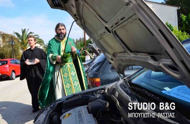 Οι οδηγοί ανοίγουν τα καπό και οι ιερείς τελούς αγιασμό για καλούς δρόμους (φωτογραφίες)