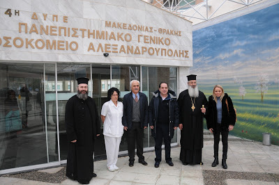 Την ίδια ημέρα ο Μητροπολίτης μας μαζί με τον Γενικό Διευθυντή της «ΑΠΟΣΤΟΛΗΣ» κ. Κωνσταντίνο Δήμτσα επισκέφθηκαν την Μαιευτική και Παιδιατρική Κλινική του Π.Γ.Ν. Έβρου, στις οποίες προσέφεραν 60 κιβώτια βρεφικού υλικού με είδη υγιεινής και διατροφής. Τα είδη αυτά, παρουσία του Διοικητού του Νοσοκομείου κ. Αδαμίδη, παρεδόθησαν στον Καθηγητή κ. Χατζημιχαήλ, Διευθυντή της Πανεπιστημιακής Παιδιατρικής Κλινικής.