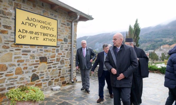 Λαχτάρα με Δένδια στο Άγιο Όρος – Ζαλίστηκε αλλά είναι καλά στην υγεία του