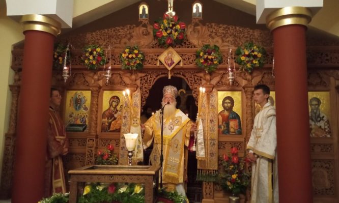 Τον Θείο Λόγο κήρυξε ο Επίσκοπος Ολβίας κ. Επιφάνιος, ο οποίος αναφέρθηκε στον διαχρονικό σύνδεσμο της Παναγίας με το Ελληνικό Έθνος, το οποίο, καθ’ όλη την διάρκεια του ιστορικού του βίου προστρέχει στην Χάρη Της και επιζητεί την Προστασία Της, κυρίως στις δύσκολες στιγμές των μεγάλων αγώνων της ιστορίας. Τόνισε, μάλιστα, ότι ο σύνδεσμος αυτός παραμένει αδιατάρακτος, παρά τις λυσσαλέες προσπάθειες των σύγχρονων αποδομητών της ιστορίας να τον αποδομήσουν και απαξιώσουν.