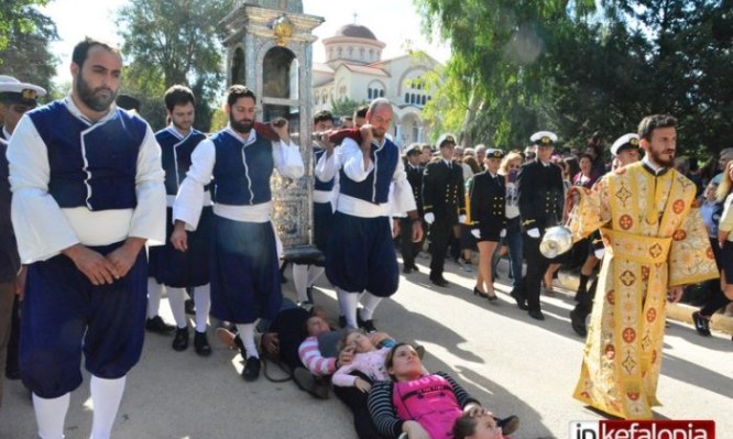 Την πανηγυρική πολυαρχιερατική θεία λειτουργία, στην οποία χοροστάτησαν οι Σεβασμιώτατοι Μητροπολίτες Κεφαλληνίας Δημήτριος, Δωδώνης Χρυσόστομος, Λευκάδος και Ιθάκης Θεόφιλος και Άρτας Καλλίνικος, στην μεγάλη εκκλησία, ακολούθησε η λιτάνευση του σκηνώματος του Αγίου, με το Λύκειο Ελληνίδων Παράρτημα Αργοστολίου και τις φιλαρμονικές της ΚΕΔΗΚΕ «Διονύσιος Λαυράγκας» και Σάμης «Θέμος Αμούργης», το τμήμα προσκόπων, τους φοιτητές της ΑΕΝ, να συνοδεύουν.