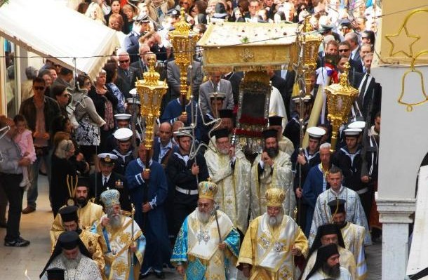 Σήμερα το πρωί, τελέστηκε Αρχιερατικό Συλλείτουργο προεξάρχοντος του κ. Βασιλείου. Αυτήν την ώρα πραγματοποιείται η λιτάνευση του Ιερού σκηνώματος στην παλιά πόλη.