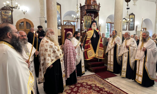 Με την πρέπουσα λαμπρότητα και εκκλησιαστική τάξη τελέσθηκε τo απόγευμα της Τρίτης 22 Απριλίου 2025 ο Μέγας Αρχιερατικός Εσπερινός της εορτής της μνήμης του Αγίου Μεγαλομάρτυρος Γεωργίου του Τροπαιοφόρου στον πανηγυρίζοντα φερώνυμο Ιερό Μητροπολιτικό Ναό της Ιεράπετρας.