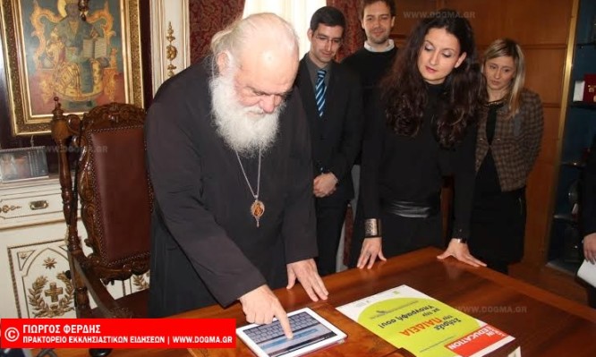 Μέσω…iPad υπέγραψε ο Αρχιεπίσκοπος την πρωτοβουλία για την μη μείωση των δαπανών στην παιδεία