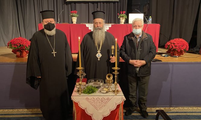 Ακολούθως, ο Πανοσ. Αρχιμανδρίτης Θεολόγος Αλεξανδράκης, αναπληρωτής διευθυντής του Ι.Π.Ε., τέλεσε με την ευλογία του Σεβασμιωτάτου τον αγιασμό της ενάρξεως και έπειτα μετέφερε τις ευχές του Μακαριωτάτου Αρχιεπισκόπου, ευχαριστώντας παράλληλα τον Σεβασμιώτατο για τη συνεργασία με το Ι.Π.Ε., για την πολύτιμη προσφορά του στην εκπόνηση του εν λόγω προγράμματος, αλλά και για τη δυνατότητα που προσφέρει στους κληρικούς μέσω της διά βίου μάθησης και εκπαίδευσης, να επιμορφωθούν και να ενισχυθούν στην αντιμετώπιση των πρακτικών θεμάτων της ενοριακής ζωής.