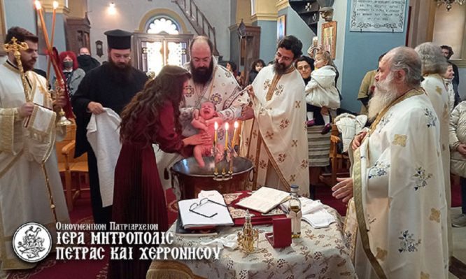 Με την καλούμενη θρησκευτική ευλάβεια και τάξη τελέστηκε η Αρχιερατική Θεία Λειτουργία και Βάπτιση κατά την αρχαία παράδοση στη Μητρόπολη Πέτρας και Χερρονήσου.