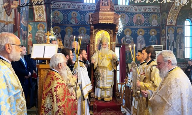Στον Ιερό Ναό Αγίου Παντελεήμονος Ορφανοτροφείου Βόλου λειτούργησε σήμερα, ο Σεβασμιώτατος Μητροπολίτης Δημητριάδος και Αλμυρού κ. Ιγνάτιος, παρουσία πλήθους πιστών. Λαμβάνοντας αφορμή από την θεραπεία των δέκα λεπρών της Ευαγγελικής περικοπής στο κήρυγμά του ο Σεβασμιώτατος ανέδειξε τη σημασία της ευγνωμοσύνης και της δοξολογίας προς τον Θεό, υπενθυμίζοντας το παράδειγμα του ενός εκ των δέκα λεπρών που επέστρεψε […]