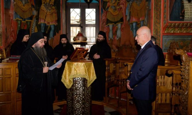 Ανάρτηση με ευχαριστίες για όσους ενδιαφέρθηκαν μετά την περιπέτεια που είχε στο Άγιο Όρος έκανε o υπουργός Εξωτερικών, Νίκος Δένδιας ο οποίος είχε σήμερα το πρωί επεισόδιο ορθοστατικής υπότασης κατά τη διάρκεια της Θείας Λειτουργίας στην Ιερά Μονή Ξενοφώντος του Αγίου Όρους.