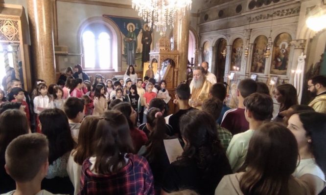 Τη Δευτέρα 15 Μαΐου 2023, ο Μητροπολίτης Χαλκίδος κ. Χρυσόστομος, συνοδευόμενος από τον Αρχιμ. Θεοφύλακτο Τσαγκάρη-Προϊστάμενο του Ενοριακού Ι. Ναού Ευαγγελισμού της Θεοτόκου Χαλκίδος και Υπεύθυνο του Ιδιαιτέρου Γραφείου του Σεβασμιωτάτου και τον Διάκ. Σταύρο Καλαφάτη, μετέβη στον Ενοριακό Ι. Ναό Κοιμήσεως της Θεοτόκου Αφρατίου, όπου, κατόπιν αιτήματος των διδασκάλων, των διδασκομένων και του Συλλόγου Γονέων του Δημοτικού Σχολείου, τέλεσε τη Θεία Λειτουργία για τους μαθητές, με συλλειτουργούς τους συνοδούς του Κληρικούς και τον Εφημέριο της Ενορίας Πρεσβ. Χρυσόστομο Τσούβαλη, ενώ συνεύχόμενος παρέστη ο Πρεσβ. Πέτρος Βλάχος-Εφημέριος της Ενορίας Αγ. Τρύφωνος Ν. Λαμψάκου.