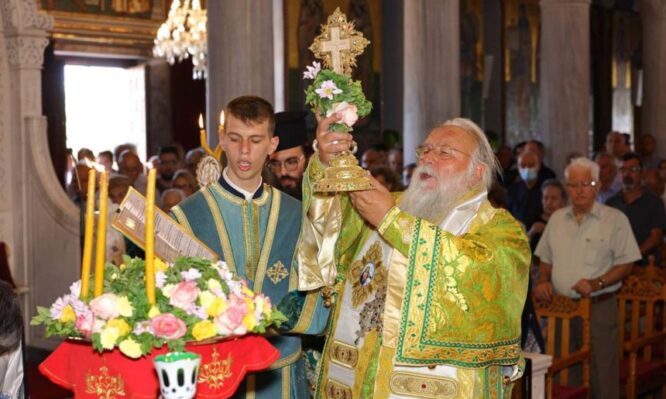 Ο Σεβασμιώτατος Μητροπολίτης Κερκύρας, Παξών και Διαποντίων Νήσων κ. Νεκτάριος κατά την μεγάλη Δεσποτική εορτή της Παγκοσμίου Υψώσεως του Τιμίου Σταυρού βρέθηκε στην ιδιαίτερη πατρίδα του και λειτούργησε στον πανηγυρίζοντα Ιερό Ναό Αγίων Κωνσταντίνου και Ελένης Βόλου