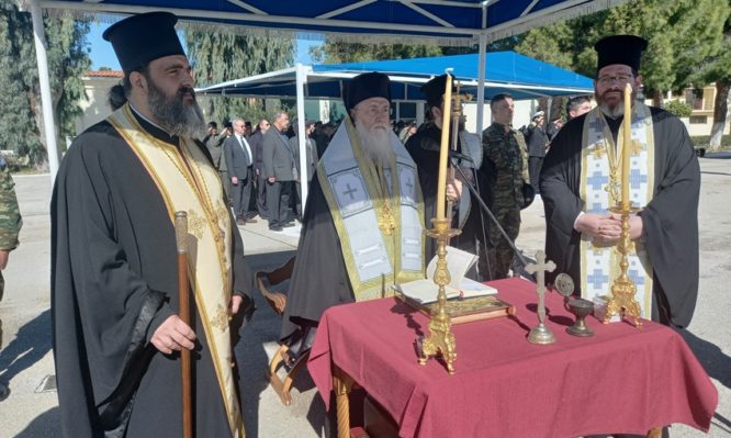 Στην τελετή Παράδοσης-Παραλαβής της Διοίκησης της Σχολής Μηχανικού, στο Λουτράκι, παρευρέθη ο Σεβ. Μητροπολίτης μας κ. Διονύσιος χθες Τετάρτη, 13 Μαρτίου 2024, όπου και τέλεσε την Ακολουθία «Δι’ αλλαγήν Διοικήσεως», πλαισιούμενος από τους συνοδούς του Κληρικούς.